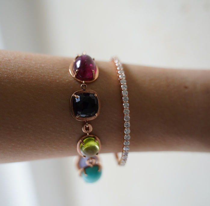 Introducing our stunning Natural Gemstone Bracelet, crafted with 18kt rose gold and adorned with 8 natural gemstones. This eye-catching piece is designed to add a touch of elegance to any outfit, with its delicate and feminine appearance. Each gemstone is carefully selected for its unique color and characteristics, creating a truly one-of-a-kind accessory. Whether it's for a special occasion or everyday wear, this bracelet is the perfect way to showcase your love for natural beauty. Elevate your jewellery collection with this exquisite Natural Gemstone Bracelet and make a statement wherever you go.